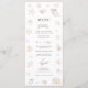 This wedding menu features soft watercolor seashell and pearl illustrations arranged in a light, airy composition with a refined coastal feel. The neutral palette and delicate detailing create an elegant beach-inspired nautical aesthetic that feels timeless rather than themed. Balanced typography and gentle watercolor textures make it an ideal match for romantic seaside, coastal, and destination weddings with a sophisticated, understated style.