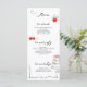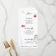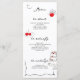 Carte de menu mariage manuscrite avec un dessin à la main et des illustrations sur le thème de la cerise dessinées à la main. Cette carte de menu mariage est disponible en noir, blanc et rouge.