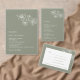 White line art flowers on a sage green background. With your names in an elegant calligraphic script on the backside.