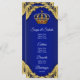 Menu baby shower Prince avec belle couronne bleue royale sur un élégant arrière - plan bleu royal et tourbillon or. Ces menus de baby shower royal bleu et or sont facilement customisés pour votre événement en ajoutant simplement vos détails dans le style de police n'importe quelle mise en page que vous préférez.