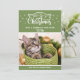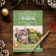 Ajoutez une touche amusante à vos salutations de vacances avec cette carte de voeux adorable et personnalisable. La légende dit "Noël de la Mowy et une nouvelle année parfaite" en lettres blanches modernes décorées d'oreilles de chats et de flocons de neige sur un arrière - plan vert mousse. Ajoutez facilement votre photo préférée de votre chat en éditant le modèle.