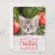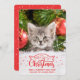 Ajoutez une touche amusante à vos salutations de vacances avec cette carte de voeux mignonne et personnalisable, avec une photo personnalisable de votre chaton, avec une belle légende superposée qui dit "Meowy Christmas and a purrfect new year" dans un lettrage moderne rouge festif décoré de belles oreilles de chat et des flocons de neige.