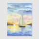 Mer au coucher du soleil. Un mignon yacht feuille la baie et va en mer. L'illustration de l'aquarelle a été dessinée et scannée. Paysage aquarelle réalisé en plein air en 2024.