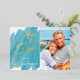 La conception de carte de vacances à feuille métallisée Seas & Greetings minimaliste de Nautical Boutique Co. présente une typographie moderne de style écriture manuscrite, votre photo de portrait préférée (ratio 5x7), et des accents d'étoiles de mer peintes à l'aquarelle pour un thème de vacances tropicales amusant. Le design est posé sur un fond de lavis d'aquarelle sarcelle aquatique. #SeasAndGreetings #CartesDeVacances #VacancesTropicales