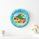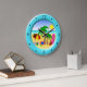 Conceptions ensoleillées de Mars de ©. À la plage l'amusement badine l'horloge murale de pièce - ces grandes caractéristiques rondes fraîches mignonnes et colorées d'horloge murale de plage une illustration de vecteur d'amusement d'une scène de plage avec des articles de plage comprenant un parapluie de plage, un ballon de plage, des bascules électroniques, un seau et une pelle, des palmiers, une serviette de plage et une planche de surf, et un anneau bleu autour de lui. Fait un cadeau parfait pour des amants de plage.