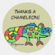 Attitude de gratitude ? Station d'appréciation ? Utilisez ce mignon caméléon de dessin animé pour express vos remerciements en disant "Merci un caméléon". Vous pouvez modifier le texte pour créer vos propres autocollants personnalisés. Appuyez sur le bouton "customiser", pour ajouter plus de lignes de texte, redimensionner l'image, changer les couleurs arrière - plans, etc. Faites des cadeaux personnalisés en ajoutant un nom d'ami. (Vous faites partie d'un caméléon !) ou faites des autocollants scrapbooking amusants, des étiquettes cadeaux, ou personnalisez-vous en étiquette...