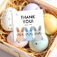 Merci à la fête étiquette avec trois petits lapins