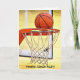 Basketball prêt à tomber dans le filet de basket-ball à la texture contemporaine vibrante.