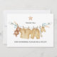 Express gratitude sincère avec ce charmant carte de remerciements de baby shower en lingerie de bouho. Doté d'une aquarelle douce illustrant un ours en peluche, un vêtement pour bébé et des chaussettes accrochées à une ligne rustique, il est le parfait mélange de doux et de simple. Les tons terre neutres et le design doux en font un lieu idéal pour tous les thèmes baby showers, en particulier les fêtes de saumons, de bois ou de genre neutre. Customisez l'intérieur avec une note personnelle ou laissez-la en blanc pour les messages manuscrits ! Idéal pour : ・ Hôtes et invités de Baby showers ・ Thèmes bébé neutres ou rustiques ・ Coordination avec la décoration de la fête de clothesline