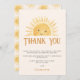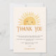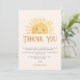 Merci à la famille et aux amis d'être venus à votre baby shower avec ce joli carte de remerciements de baby shower solaire. Il dit merci en typographie élégante avec un adorable soleil d'aquarelle jaune sur un arrière - plan crème douce. Le message est personnalisable. Le dos est décoré d'un motif souriant. Aquarelle originale © Michele Davies.