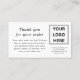Merci blanc pour votre commande Petits Cartes de visite, avec un logo d'entreprise personnalisable, et message de remerciement avec les coordonnées.