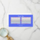 Un carte photo plat de remerciement bleu pour 2 photos, avec des tourbillons et des petits coeurs rouges autour du cadre. Texte personnalisable : Merci - Votre message personnel ici, Dan & Sue.