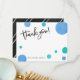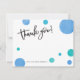 Le baby shower de point de polka vous remercient que les cartes avec "vous remercient !" en manuscrit manuscrit amical au dessus et au grand pois de bleu et d'aqua flottant autour dans une conception très moderne et à la mode. Le fond peut être personnalisé avec votre propre blanc nommé ou gauche pour une carte totalement manuscrite. Perfectionnez pour des baby showers de garçon.