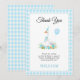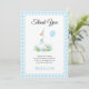 Une oie bête et la carte à plat en Merci floral de 1er anniversaire en vichy garçon bleu. Cette adorable carte de premier anniversaire présente une oie fantaisiste ornée d'un casquette d'anniversaire bleu et d'un arc, le tout dans un cadre blanc plein de charme avec des coins arrondis. L'oie est perchée au sommet d'un joli arrangement de fleurs, avec un ballon bleu. La carte comprend le message "Merci" et est bordée d'un délicieux motif bleu et blanc en vichy. Au contraire, vous trouverez le même en vichy motif.