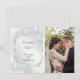 CARTE DE REMERCIEMENT PHOTO | Ajoutez votre photo - Un fond luminescent vert miel givré avec des feuilles de rose lumineuses, des feuilles d'eucalyptus, de la gypsophile et des scintillements étincelants. Le verso est d'une couleur coordonnée complémentaire. Ce design est particulièrement beau sur le papier Pearl Shimmer. Personnalisez le texte, le style de police, la couleur et la taille. Nous avons créé ce modèle pour vous permettre de le personnaliser facilement avec vos propres informations. Cela fait partie d'une suite complète de papeterie de mariage avec de la papeterie assortie pour le mariage, la baby shower et d'autres événements. Œuvre d'art originale © par WhimsicalArtwork™.