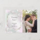 CARTE DE REMERCIEMENTS PHOTO | Ajoutez votre photo - Un fond luminescent rose scintillant et vaporeux avec des feuilles de rose lumineuses, des feuilles d'eucalyptus, de la gypsophile et des scintillements étincelants. Le verso est d'une couleur complémentaire coordonnée. Ce design est particulièrement beau sur le papier Pearl Shimmer. Personnalisez le texte, le style de police, la couleur et la taille. Nous avons créé ce modèle pour vous permettre de le personnaliser facilement avec vos propres informations. Cela fait partie d'une suite complète de papeterie de mariage avec de la papeterie assortie pour le mariage, la baby shower et d'autres événements. Œuvre originale © par WhimsicalArtwork™.