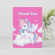 Merci Cartes à une fête d'anniversaire magique avec une adorable licorne avec des ailes dans les nuages.