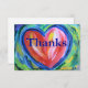 Message de carte "Merci". L'art de la peinture présente un coeur rouge coloré avec des reflets de blanc et d'or. Le coeur est souligné en bleu avec un arrière - plan vert doux. Cette peinture de coeur est un hommage à garder l'espoir dans votre coeur quand les tristes bleus vous entourent mais poussent vers le renouveau vert. oeuvre d'inspiration de Laurel Latto pour l'association DonnaBellas Angels. La mission de l'association est de fournir un art inspirant pour le bien-être en santé mentale. La devise est "La médecine guérit le corps, l'art guérit l'âme". Pour en savoir plus, consultez le site DonnaBellasAngels.org.