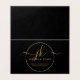 Carte de boîtier pliée pour Merci client Black Gold pour Monogramme d'entreprise. Elégante carte de remerciement d'affaires avec logo professionnel monogramme dans un script de calligraphie avec des swashes et vos coordonnées ou tout autre texte personnalisé dans votre choix de toutes les couleurs (en or sur noir) sur le devant et votre message client sur le dos. MODIFICATIONS : Modifiez le style de police de texte, la couleur, la taille, l'espacement et le placement ou la couleur du cadre arrière - plan et circulaire dans EDIT pour coordonner avec votre marque. ASSISTANCE : Pour obtenir de l'aide sur la modification ou la personnalisation de la conception ou pour coordonner des éléments, contactez le concepteur AVANT LA COMMANDE via l'onglet MESSAGE Conversation Zazzle ou envoyez un courriel à makeitaboutyoustore@gmail.com.