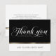Elégante entreprise noir et or Carte de remerciements. Personnalisez en ajoutant votre propre texte. Le dos de la carte permet d'ajouter le nom de l'entreprise, l'adresse et le site Web. Parfait pour les commandes, les affaires à l'entreprise ou toute autre occasion de remerciement.