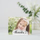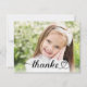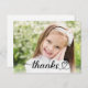 Les cartes de remerciements personnalisées modernes comprennent une photo en noir (peut être modifiée) Merci texte de script avec un accent de coeur mignon. Parfait pour les enfants à envoyer comme notes de remerciement pour les cadeaux d'anniversaire, les premiers cadeaux de communion, et plus. La carte comprend de l'espace sur le dos pour une note manuscrite.