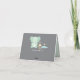 Un petit oiseau brun tient un parapluie à pois jaunes et se tient doucement et patiemment à côté d'un petit éléphant vert menthe portant une paire de couches avec une épingle de couche vert pastel sur cette petite fille ou bébé garçon baby shower neutre sexe merci notes et cartes. Oeuvre © Chrissy H. Studios, LLC. Tous droits réservés.
