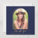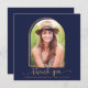 Carré Boho Arch Minimalist Navy Blue and Gold Photo Graduation Carte de remerciements avec votre photo et notre superbe typographie chic boho et arche géométrique en or bleu marine moderne et jaune safran. Parfait pour votre diplôme merci! Veuillez nous contacter à cedarandstring@gmail.com si vous avez besoin d'aide pour la conception ou les produits correspondants.