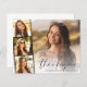 Un diplôme moderne et abordable vous remercie en mettant en vedette la photo du diplômé superposée avec une bande de trois petites photos de carré, "merci" dans un script élégant, et leur nom, l'école et l'année de classe en simple typographie. Au contraire, customisez un message de remerciement et ajoutez le nom du diplômé dans un script signature.