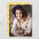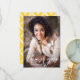 Carte de remerciements de graduation élégant avec calligraphie blanche lettrée à la main avec motif de diamants ikat jaunes. Cette carte à plat sera parfaite pour le carte de remerciements mariage ou le carte de remerciements de graduation. Vous pouvez customiser la photo, les textes, et le motif arrière. Une version carte postale est également disponible.