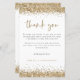 Merci Gold Parties scintillant Engagement Party. Une taille PLUS GRANDE de 5,5 po x 8,5 po à un prix abordable, sur un STOCK CARTE SEMI GLOSS 110 lb, idéal pour les invitations, à peu près la même épaisseur qu'une carte postale, ou un élégant stock LINEN 110 lb - pour un luxe, légèrement plus mince à un grand rapport qualité-prix. VEUILLEZ NOTER QUE LES ENVELOPPES OPTIONNELLES SONT UN PEU PLUS GRANDES EN TAILLE À 6,75" x 9" env. Cette alternative de taille budgétaire est également disponible dans d'autres choix de papier. Le papier FELT 100 lbs est de couleur bouffante, PAS blanc, donc ajoute une touche rustique. Le stock de papier MATTE 80lbs est blanc brillant, pour une impression nette, idéal pour vos menus et programmes, tandis que le papier SATIN 80lbs est mince et léger, idéal pour les enceintes Les bordures de parties scintillant faux or sont en haut et en bas et le Merci est dans un script de style manuscrit en coordination or. Personnalisez facilement le reste du texte.