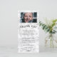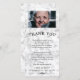 Carte de remerciements pour un service commémoratif avec du texte noir contre un arrière - plan en marbre blanc et gris. Ajoutez une photo de votre être cher.