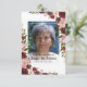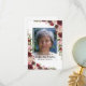 Un remerciement funéraire sur une carte d'invitation plate est une façon simple de remercier ceux qui vous ont montré le confort pendant votre deuil. Cette carte comporte un arrière - plan blanc qui peut être changé en n'importe quelle couleur, des fleurs rose et bordeaux, une photo de votre proche et un message de remerciement personnalisé.