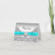 Carte de remerciements mariage en argent et bleu turquoise avec belle dentelle en argent arrière - plan et élégant imprimé ruban bleu turquoise avec centre diamant. Ces cartes de remerciement bleu turquoise sont facilement customisées pour votre événement en ajoutant vos détails dans le style de police, la couleur et le libellé de votre choix.