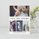 Ces cartes de remerciement mariages simples mais élégantes comportent une typographie de texte de machine à écrire noire sur un arrière - plan blanc, avec une place pour quatre de vos photos de mariage personnel.