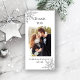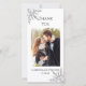 Envoyez une note de remerciements, d'appréciation et de gratitude à vos amis et à votre famille après vos noces avec un joli Carte photo de Merci de mariage hivernal Snowflake. Personnalisez-le avec les noms de la mariée, du marié et de l'image du mariage. Cet élégant mariage d'hiver personnalisé merci photocard présente un design complexe de flocon de neige avec un ton argenté sur un arrière - plan blanc. Parfait pour un thème de mariage d'hiver de décembre, janvier ou février.