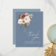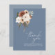 Bleu rustique Dusty et Fleurs de Pêche Carte de remerciements Mariage. Élégamment invitation vos invités à votre journée de mariage avec ce carte de remerciements mariage élégamment conçu avec un beau mélange de bleu poussiéreux et de fleurs de pêche. Ce carte de remerciements mariage est d'un beau design floral et botanique, aux ambiances rustiques et boho, parfait pour votre mariage d'inspiration florale ou fleur sauvage. La disposition minimale et simple fait ressortir la verdure luxuriante et les éléments floraux élégants. Ce carte de remerciements mariage donne le ton d'un bel ensemble mariage entouré de verdure et de fleurs sauvages. Un complément parfait à toute célébration botanique ou boho-chic.