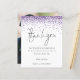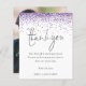 Un rapport qualité-prix BUDGET alternative sur une taille plus petite 4,5 x 5,6" semi-brillant poids 110lbs, qui est d'une épaisseur similaire à une carte postale (cependant ne convient pas à l'utilisation comme carte postale.) VEUILLEZ NOTER qu'il y a UN par feuille. Parties scintillant violet Script Photo Mariage Merci. Une fausse parties scintillant violette borde le haut et définit un script de style manuscrit élégant pour le Merci. Sur le dos, remplacez l'exemple de photo par votre préféré de la journée comme souvenir pour vos invités. Personnalisez facilement le reste du texte avec votre message et vos noms.