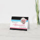 Carte avant : "Avec ma sincère appréciation pour l'interview" - Belle fleur fuchsia sur un élégant design de carte rose, bleu et noir.