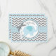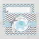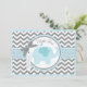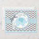 La copie grise et blanche chic de chevron avec des bleus layette contrastent et un éléphant bleu mignon avec le carte de remerciements d'équilibre arrière dessus été perché par oiseau et de l'arc 3D-look et du ruban.