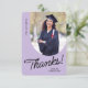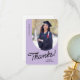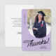 Un carte de remerciements diplômé avec une photo verticale avec une arête voûtée. Personnalisez cette carte violet clair et noire avec votre propre message de gratitude ou utilisez celle montrée.
