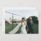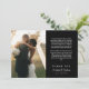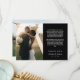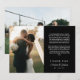 Carte de remerciements romantique avec deux de vos photos de mariage, une plus petite d'un côté et une plus grande de l'autre. Merci et votre date de mariage écrit dans une police blanche nette avec vos noms dans un script romantique avec un texte de remerciement imprimé ci-dessus sur un arrière - plan noir.