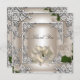 Carte de Remerciement Elégant Mariage Crème Rose Argenté Invitation cœurs colombes crème, Nœud Roses Blanches