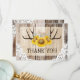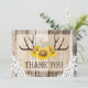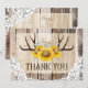 Bois rustique inspiré de Bohème avec les andouillers, la dentelle blanche et le carte de remerciements de tournesols.
