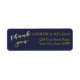 NewParkLane - Élégantes étiquettes d'adresse de retour, avec citation "Merci" dans une élégante typographie de script de feuille d'or faux, contre un arrière - plan bleu marine. Facile à customiser à Zazzle avec votre propre texte pour un design personnalisé. Tous les styles de texte, couleurs, tailles peuvent être modifiés selon vos besoins. Consultez les collections de scripts de brosse d'or pour les articles correspondants ou d'autres devis. Avez-vous des souhaits particuliers en matière de design personnel? N'hésitez pas à me contacter.