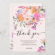 Ajoutez vos cartes de remerciement personnalisées à votre bébé ou à votre douche de mariée avec cette originale et mignonne campagne de fleurs sauvages en rose pastel, violet, orange et fleurs et feuilles de verdure sur un fond rose pastel modifiable.