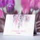 Carte de remerciement de faveur de mariage botanique floral art libre vignes. Coordonne avec des fleurs de vigne en cascade rose, indigo violet, gris aquarelle moderne collection de mariage d'art abstrait. Idéal pour les mariages, les événements et les célébrations générales de remerciement ou de don. Personnalisez avec vos propres noms message ou événement. Art et design abstrait moderne original par Sarah Trett pour www.mylittleedenweddings.com