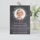 Aquarelle moderne Eucalyptus Vert Sympathie Photo Funérailles Merci Cartes. Ces cartes funéraires sympathiques présentent un modèle photo unique dans la couronne botanique d'eucalyptus, son nom et ses dates, sur un motif rustique en ardoise de tableau noir. Personnalisez-vous avec votre message de remerciement. Ces cartes de sympathie commémorative sont parfaites pour les cartes de remerciement funéraire, ou la célébration de la vie, les cartes de remerciement. DROIT D'AUTEUR © 2020 Judy Burrows, Black Dog Art - Tous droits réservés. Merci funéraire Eucalyptus Sympathy Ardoise Photo