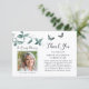 Merci funéraire Papillon Photo Botanique Vert Merci Cartes. Envoyez des remerciements sincères pour la gentillesse et la compassion dont vous avez fait preuve pendant votre période difficile de perte. Le design comprend des éléments botaniques et des papillons d'aquarelle vert sauge doux et muet, une photo et une zone de message modifiable pour votre texte personnalisé. ASSISTANCE : Pour obtenir de l'aide sur la modification de la conception, le transfert de la conception à un autre produit ou si vous souhaitez coordonner des éléments, contactez le concepteur AVANT DE COMMANDER via l'onglet MESSAGE Conversation Zazzle ou envoyez un courriel à makeitaboutyoustore@gmail.com.