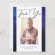 Merci funéraire Photo Sympathy Bereavement Memorial Card présente un motif nébuleux bleu moderne entourant une photo de votre être cher avec le texte "Merci" dans le script noir moderne. Au verso, ajoutez votre message personnalisé. Conçu pour vous par Evco Studio www.zazzle.com/store/evcostudio