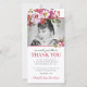 Elégante carte de remerciement funéraire avec un arrière - plan blanc classique qui peut être changée en n'importe quelle couleur, une photo de votre être aimé, un joli écran floral rose d'aquarelle, et un mémorial de remerciement modèle facile à personnaliser.
